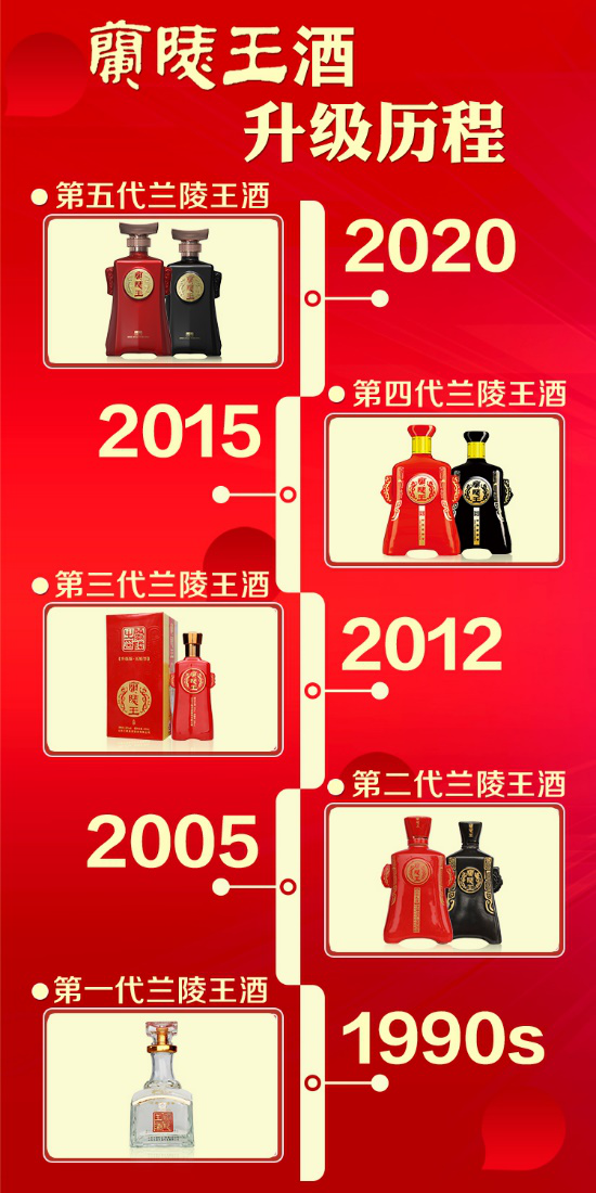 每个时代都有记忆,作为时代的亲历者和见证者,兰陵王酒从发布至今已有近三十年的时光。上世纪90年代,随着国民经济的快速增长,第一代兰陵王酒面世,为鲁酒高端化打开了大门;2005年第二代兰陵王酒将产品和品牌文化相融合,开创了兰陵王酒王者归来的新格局;2012年通过技术创新,推出了38%vol五粮升级版兰陵王酒,并荣膺中国白酒酒体设计奖;2015年,在全民喝好酒的时代,兰陵为迎合消费者在品质方面等需求,发布了五粮型兰陵王酒,并荣获中国白酒酒体设计奖。