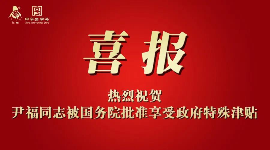 山东兰陵美酒股份有限公司副总工程师尹福同志,继连续三届被中国白酒协会考聘为国家级白酒评委,连续两届被评为齐鲁首席技师后,仍然不断精修专业技能,鉴于其在白酒研发事业中取得的卓著成绩,做出的突出贡献,经人社局积极向上申报,于2021年1月被国务院审批为享受政府特殊津贴的高技能人才。